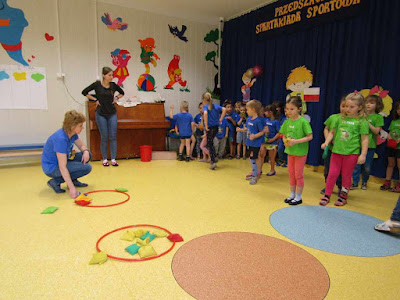 Dziś w przedszkolu odbyła się Zimowa Spartakiada Sportowa. W I turze udział wzięli "Tralalińscy" i "Słowiki", a w II turze - "Marzyciele" i "Podróznicy". Pani Marzenka z Panią Agnieszką przygotowały dla dzieci różne konkurencje sportowe - na szybkość, na precyzję oraz siłowe. Dzieci z wielkim entuzjazmem wzięły udział w zawodach, a w nagrodę otrzymały pamiątkowy dyplom oraz owoce :)
