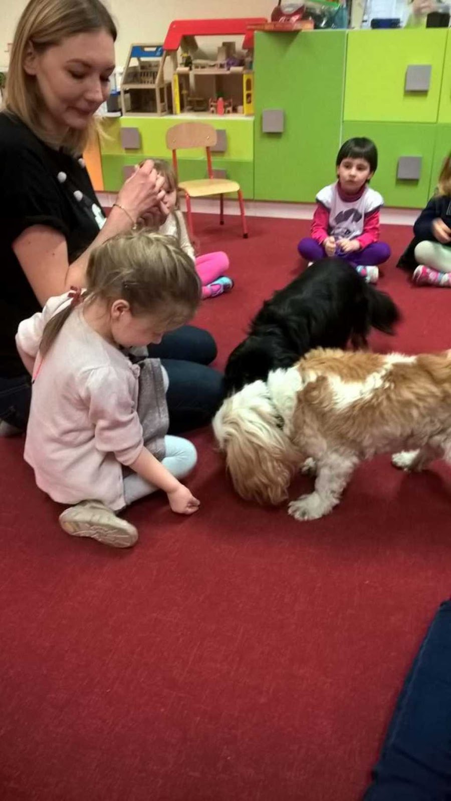 W piątek, 23 marca przedszkolaków odwiedził Kajko i Kokosz - pieski, które z dziećmi prowadziły dogoterapię. Ich trenerka opowiadała, w jaki sposób należy zajmować się pieskiem. Dzieci bardzo cieszyły się z tej wizyty. Psy wprowadziły radosną atmosferę pokazując sztuczki.