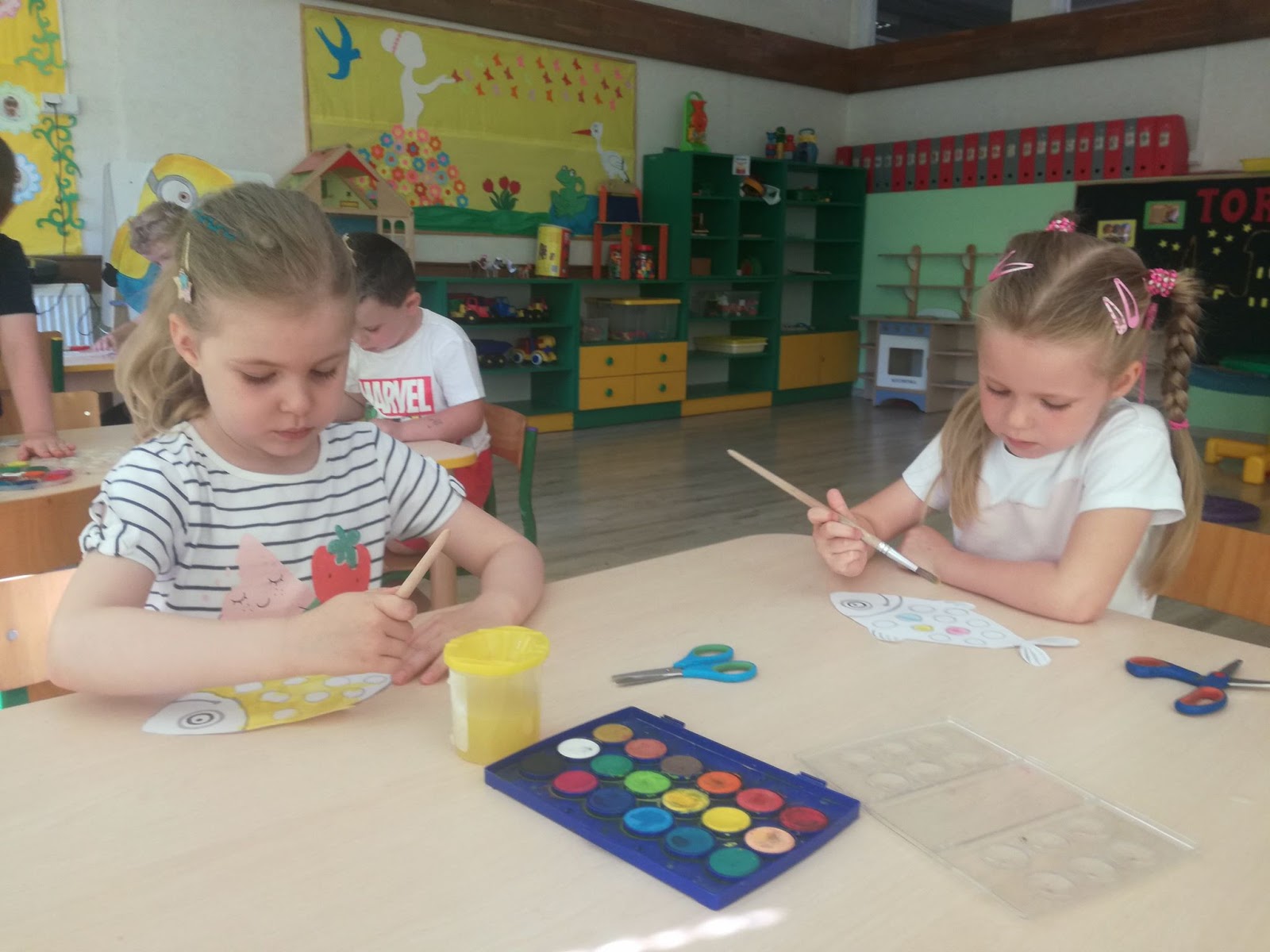Słowiki" tęsknią za wyjazdami nad polskie morze. Żeby, choć odrobinę bardziej poczuć wakacyjny klimat dzieci przepięknie ozdobiły i wycięły morskie rybki, które posłużyły do wspólnych zabaw.